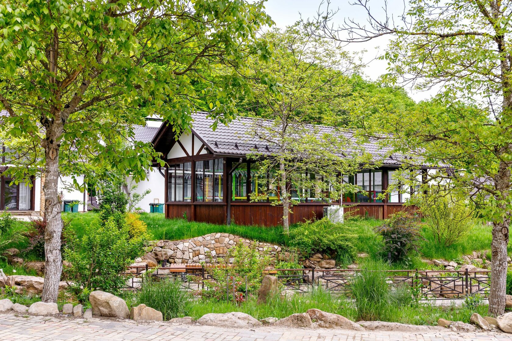 9. Рукотворный водопад: У нас есть рукотворный водопад, который создает впечатляющую атмосферу на территории комплекса.